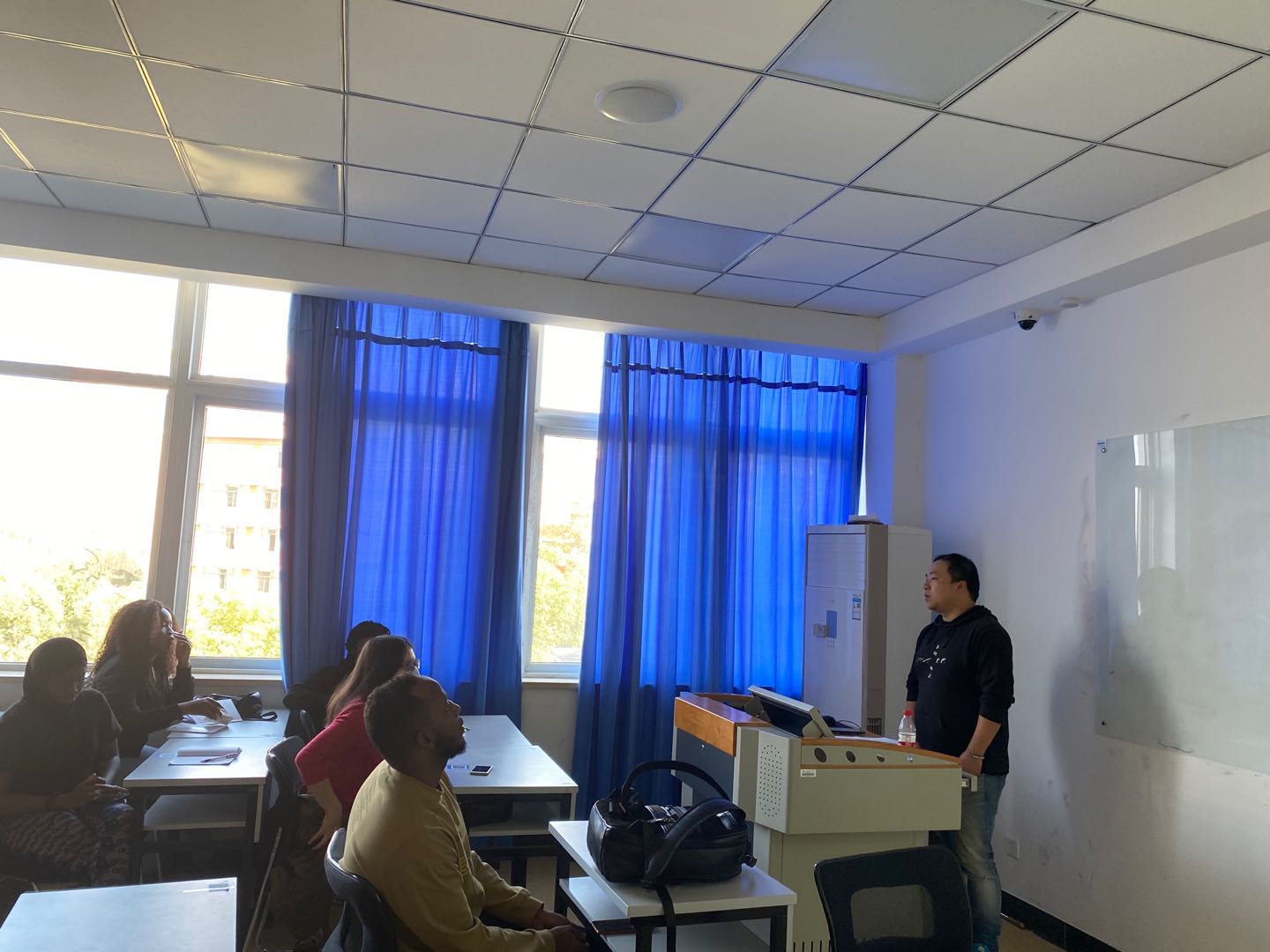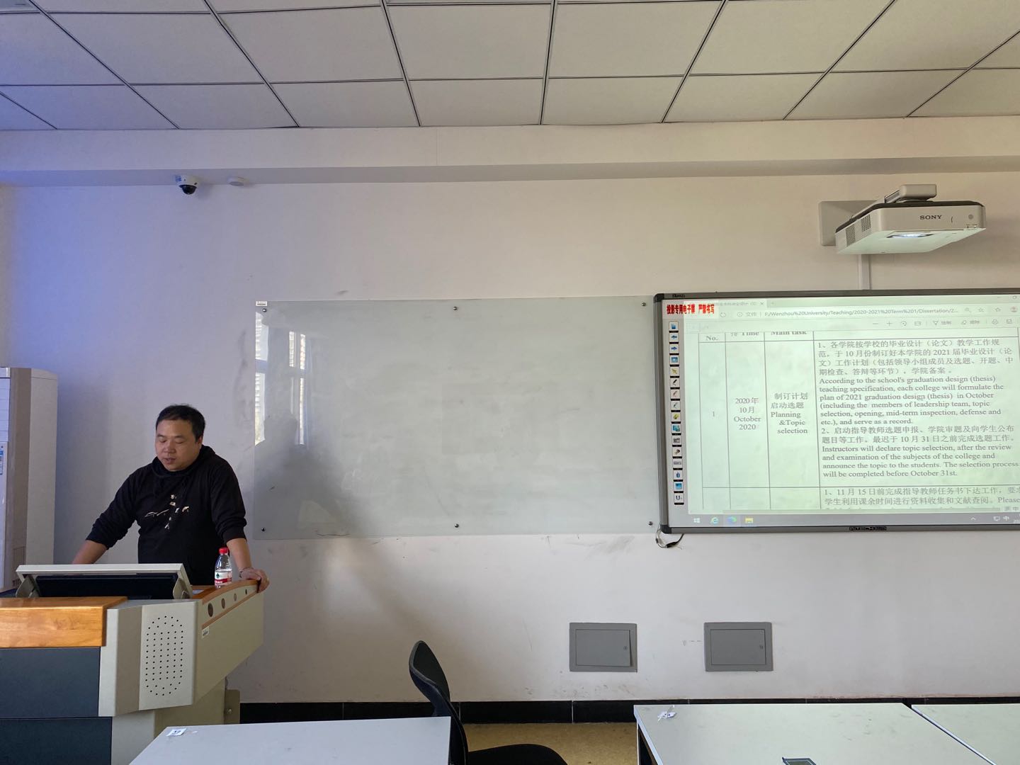 为切实落实2021届国教部的毕业论文和实习工作,2020年11月5日早上9点,温州大学商学院国教部2021届留学生毕业论文和实习动员大会在北3-308教室召开。本次动员大会由国教部主任徐正主持。由于疫情的影响,此次会议主要由在校的17名国贸留学生参加,境外的32名学生将通过视频录播的形式发动和告知学生相关事宜。