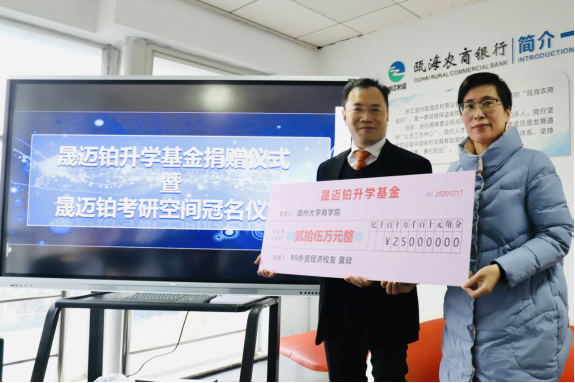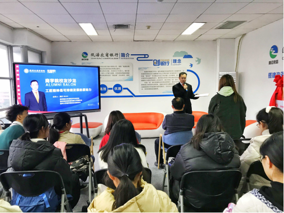 商学院93届外贸经济专业知名校友兼商学院校友会副会长、温州晟迈铂贸易有限公司董事长莫欣慷慨捐资二十五万元在学院设立晟迈铂升学基金,并冠名晟迈铂考研空间。随后,他为学院各学生组织的优秀学生干部做《工匠精神是可持续发展的原动力》的精彩分享。