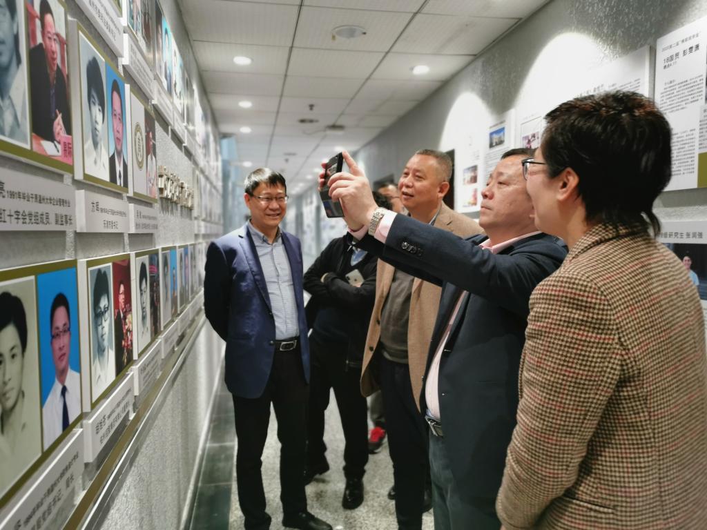 在商学院领导班子的陪同下,谢树华书记参观了商学院文化长廊,谢树华书记对商学院文化提升工程表示充分的肯定,尤其是对校友文化墙的建设表示高度赞扬。