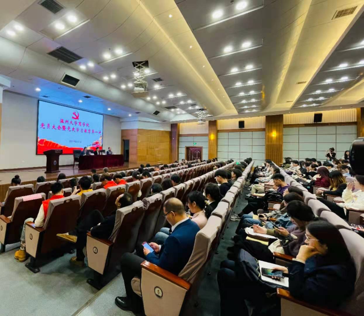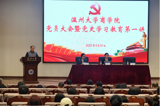 3月31日下午,商学院党委在北校区信息楼报告厅召开全体党员大会,并正式启动党史学习教育第一讲。