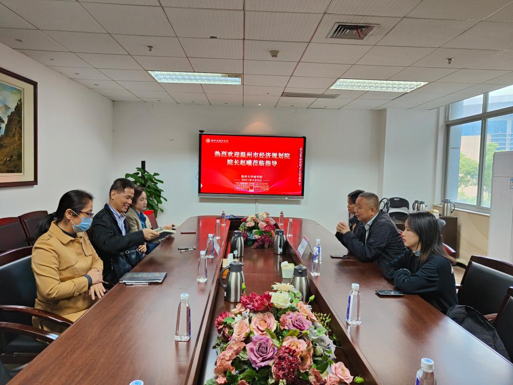 2021年4月8日下午,温州市经济建设规划院院长赵曦一行来院交流,双方在信息楼A222展开座谈会就人才培养与项目合作等相关工作进行交流。温州大学商学院院长胡振华等参加交流。