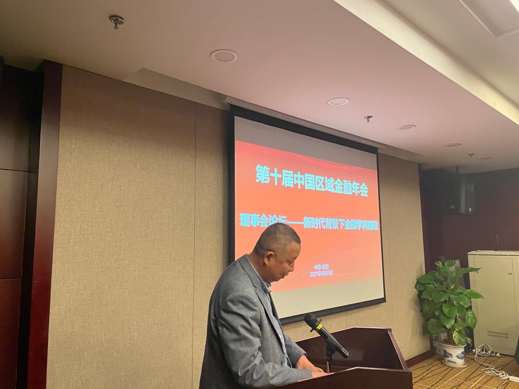 4月24日中国区域金融年会在北京工商大学举行。作为年会理事单位,胡振华院长应邀出席金融学科建设研讨会以及年会理事会,并作了温州大学金融学科与金融工程专业建设工作的汇报。胡振华院长还应邀担任了年会分论坛的评论人。