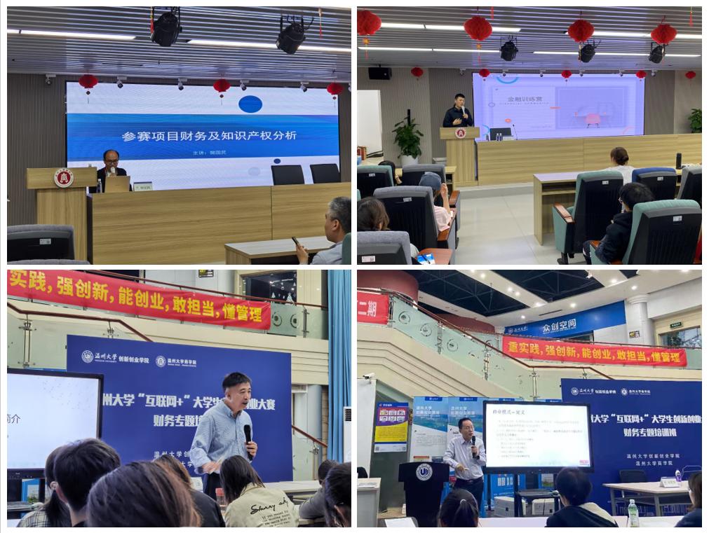 2021年4月21日至4月25日,温州大学“互联网+”大学生创新创业大赛财务专题培训班在大学生活动中心创业园及商学院A226仲辉商道讲堂顺利举行。