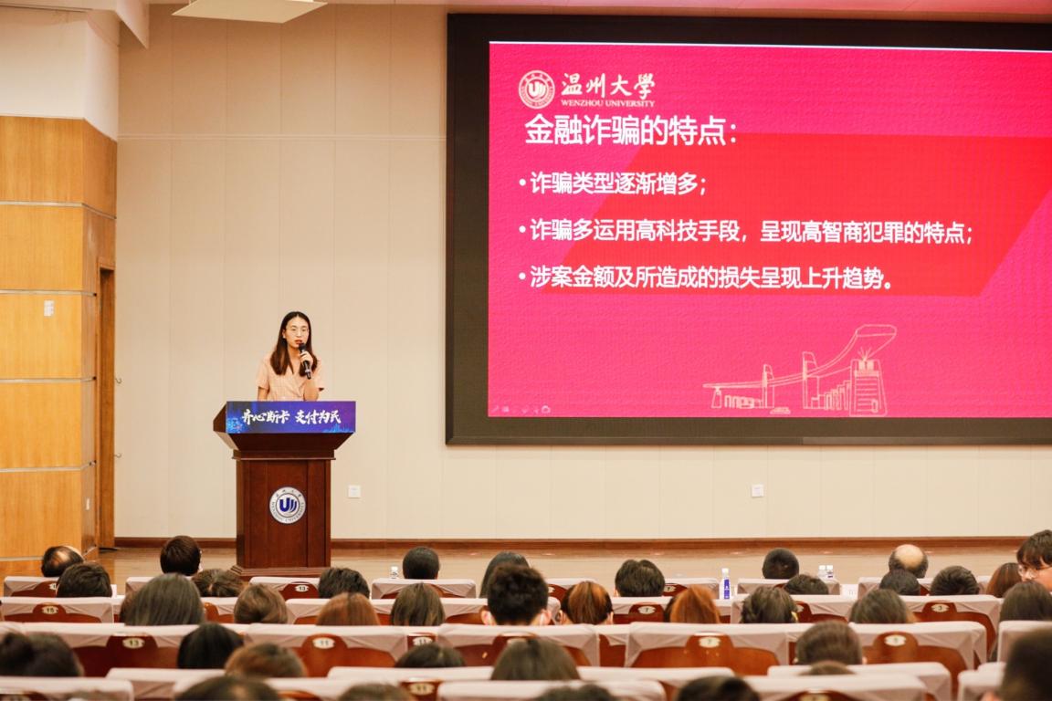 为深入贯彻落实打击治理电信网络新型违法犯罪工作要求,进一步提高师生的反诈意识和识诈能力,切实保障师生群体的资金安全,6月10日晚,温州大学联合中国人民银行温州市中心支行、温州市反诈中心等单位联合举办“齐心断卡支付为民---全社会反诈总动员之银校共建反诈拒赌宣传进校园活动”。