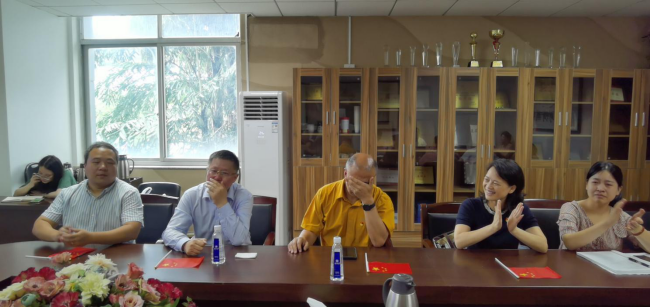 许多老师情到深处,不禁掩面洒下热泪,结合自己的切身体会分享中国共产党给自己带来的实实在在的改变,还有老师在现场即兴吟诵,祝福伟大的党。学院来自巴基斯坦的外籍教师吴丁今天一早也来到会场,与大家一起观看直播,在热议环节,他说,“我特别荣幸能见证中国共产党100周岁生日,来到中国7年,我深切地感受到了这个国家的伟大与日益繁盛,我也愈发爱上了这里,深深地祝福中国共产党和中国人民”。