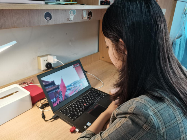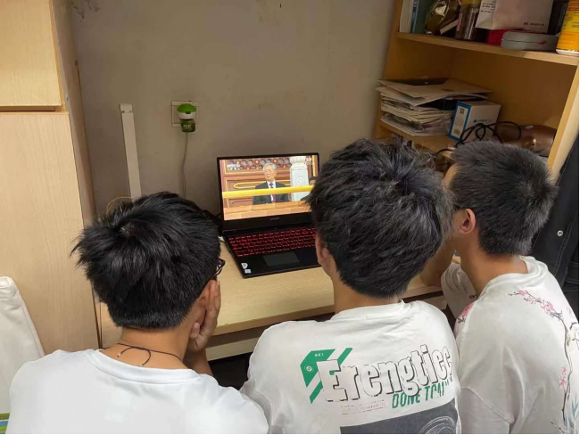 其他师生们也纷纷在家中、宿舍等场所观看大会直播。