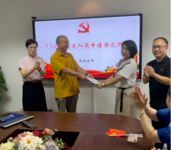 “从前我对入党也有过疑虑,怕耽误自身的教学和科研工作。但是多次感受到学院与系里的党员活动氛围,我的疑虑打消了,置身其中,才能理解这个优秀的集体在如何调动每个人的能动性,为国家发展建言献策。尤其是新冠肺炎疫情暴发以来见证的种种,更让自己意识到加入中国共产党是一件非常光荣的事。我希望成为这个庞大“机器”的小小“螺丝钉”。”在现场,张老师朴素而深情地分享自己的心路转变历程。