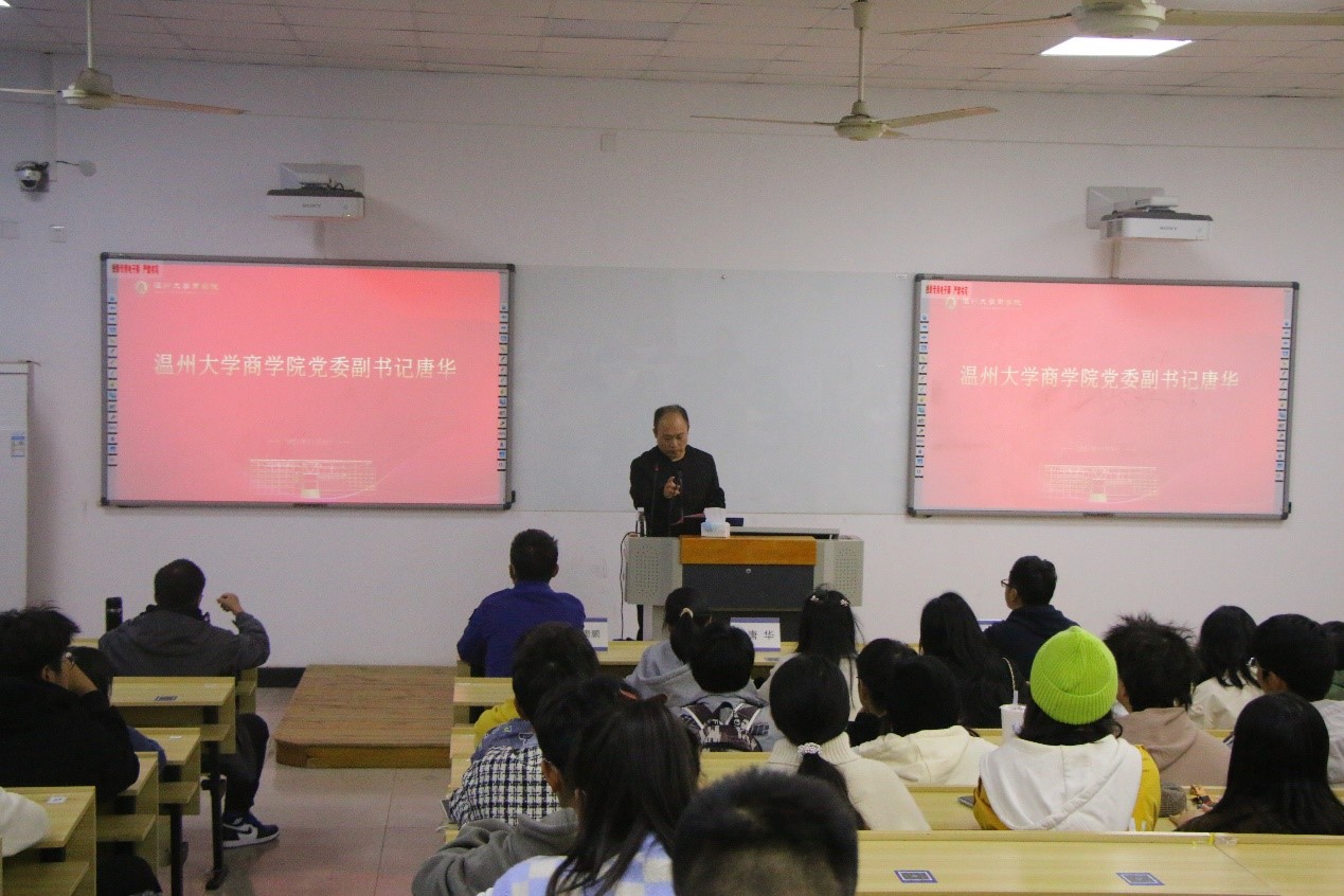 2021级班长和全体寝室长做了一场消防安全专题知识讲座。温州大学商学院党委副书记唐华出席会议。