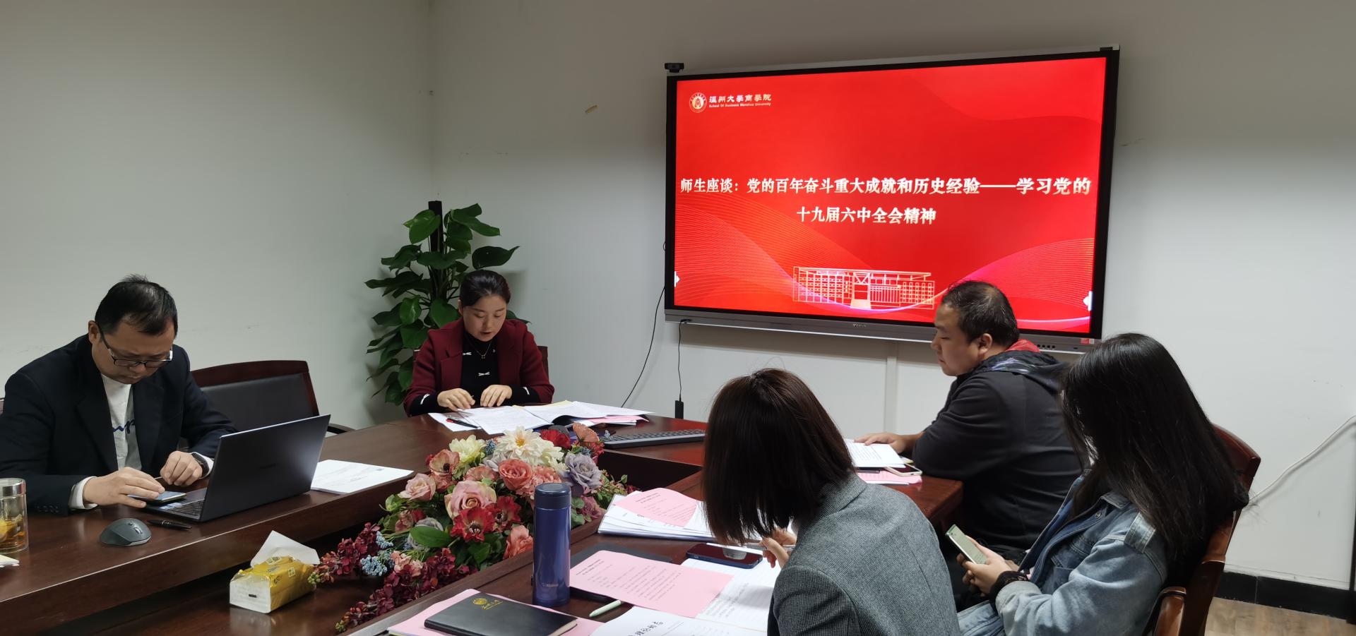 会议最后,郑彩莲书记对本次中心理论组学习会进行总结讲话。她引用习近平总书记的金句,“中国共产党人依靠学习走到今天,也必然要依靠学习走向未来”,强调学习的重要性,对三位老师的理论领学和对每一位老师发表心得体会表示肯定。同时,郑书记指出,今天主要聚焦学习党的十九届六中全会精神,这是我们党在百年华诞之际、在全面建成小康社会实现第一个百年奋斗目标、开启全面建设社会主义现代化国家新征程的重大历史节点召开的一次极为重要的会议,对于推动我们全党进一步统一思想、统一意志、统一行动,团结带领各族人民夺取新时代中国特色社会主义的新的伟大胜利具有重大的现实意义和历史意义。她强调《决议》是一篇承前启后、继往开来的史诗般的文献,希望大家会后再次细读、学习《决议》全文,并提出了四点要求:一是各个支部要认真学习、贯彻落实《决议》提出来的为党育人的具体要求,组织支部成员学习,开展主题党日活动;二是共青团要带领广大团员、青年共同学习,各个支部抓好学习的同时还要带领全院的共青团学好、弄懂基本的内容,掌握重要的观点,理解工作的要求,并要求基层团支部以团日活动的形式展开学习;三是要提高宣传引领实效,依托新媒体平台进行宣传,尤其是要用好微信公众号、直播间;四是深化党史学习教育,着力将党史学习教育引向深入,在巩固前期工作成效的基础上,以《决议》为大纲,突出主题主线来理解重大历史结论,让学生在真正学习的过程中懂得哲理。