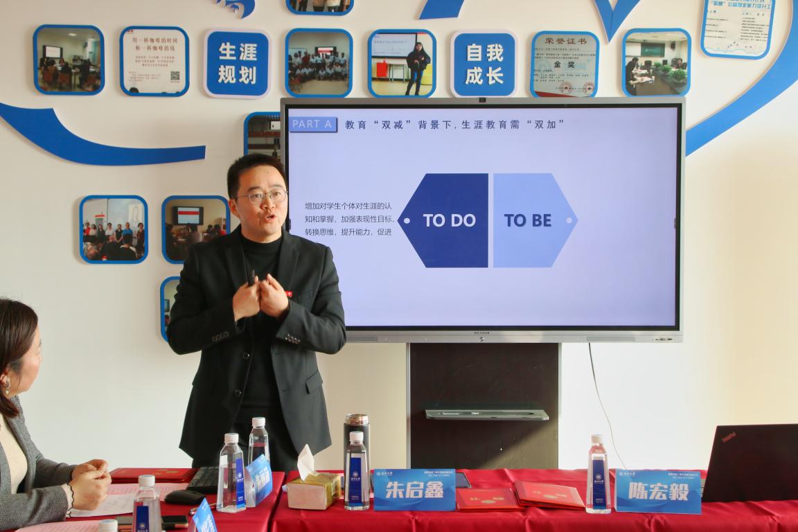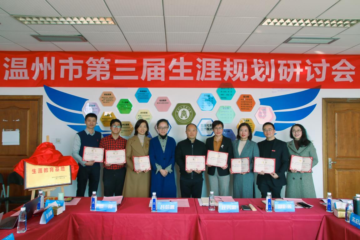 “双减”之下,为服务温州基础教育,推进温州市中学生涯教育的发展,温州大学生涯教育研究中心也做了许多实践探索,本学期与温州实验中学府东分校开展了校本课程建设合作。因而在本次研讨会上,双方进行了生涯教育基地授牌以及颁发《做自己的生涯规划师》课程聘书仪式。在合作仪式上,温州实验中学教育集团副校长周莹校长结合当代“双减”背景下的课后服务教育,认为今天的基地授牌是生涯教育的开始,希望在长远的未来,双方可以有深度合作,成为一种常态,并且要进一步推进义务教育阶段的生涯课程体系化建设,努力将生涯教育活动打造成有品质、有特色的教育品牌。