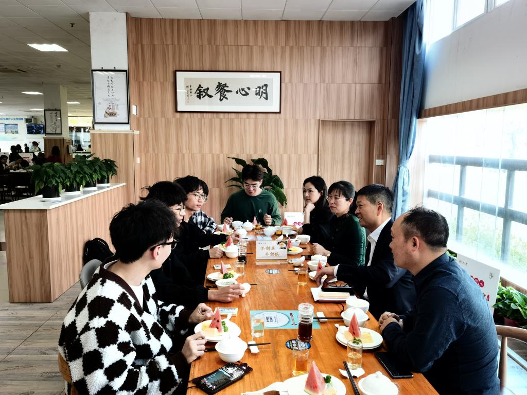 最后,庄兴忠副书记邀请商学院19市销班级的一个寝室的学生们“明心餐叙”。午餐过程中,他亲切地询问了每位同学来自哪里,关心他们的生活学习状况,并与同学们一起探讨了如俄乌冲突、青山镍事件等近期社会热点问题,并勉励同学在关心时政热点的同时,学会合理应对网络上的“碎片化”信息,恪守理性思考。