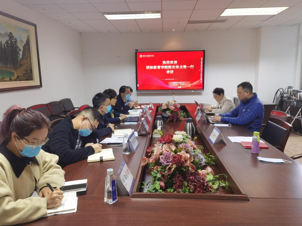 2022年3月22日上午,国际教育学院院长宋占美、副院长熊勇、副书记方建晓等一行来商学院调研,在商学院A222会议室齐聚一堂,商学院副院长余向前,国教部副系主任陈翊博士等出席洽谈国际教育合作。