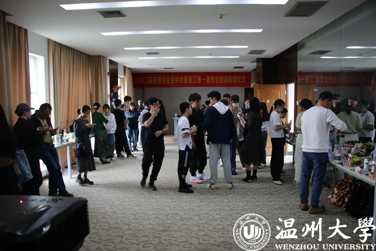 4月20日下午,商学院工商管理系在商学楼A610教室举行2021级工商管理专业宣讲会暨浙江省一流专业建设启动仪式。商学院院长胡振华、党委书记郑彩莲、副院长余向前、工商系全体专任教师,以及2021级工商管理专业全体本科生参加了宣讲会,宣讲会由工商系主任陈敏主持。