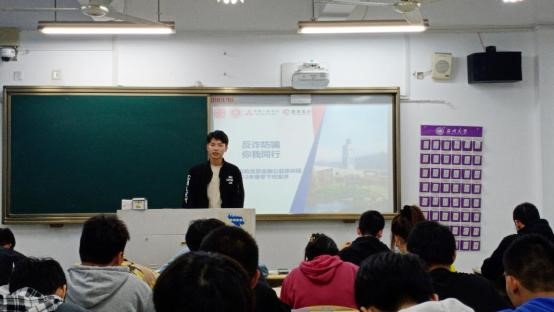 截止目前,金融反诈防诈主题宣讲已陆续在商学院、化学与材料工程学院、建筑工程学院、生命与环境科学学院、电气与电子工程学院、外语学院等学院开展,覆盖班级达35个,学生人数高达3500人。相关防诈反诈主题活动也吸引了60余名同学的积极参加,防诈宣传效果不断增强。