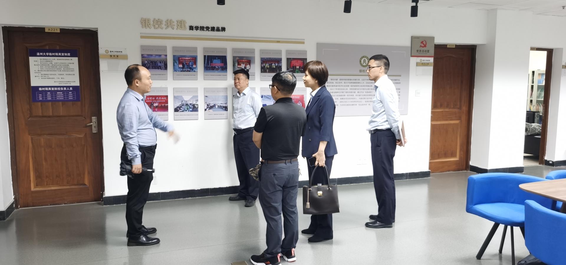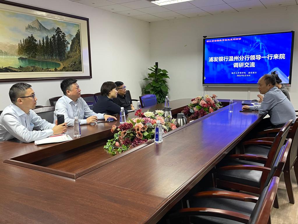 2022年5月10日下午,浦发银行温州分行办公室兼资金财务部经理方珏、温州理工学院经管分院蒲祖生老师等一行来麻豆传媒