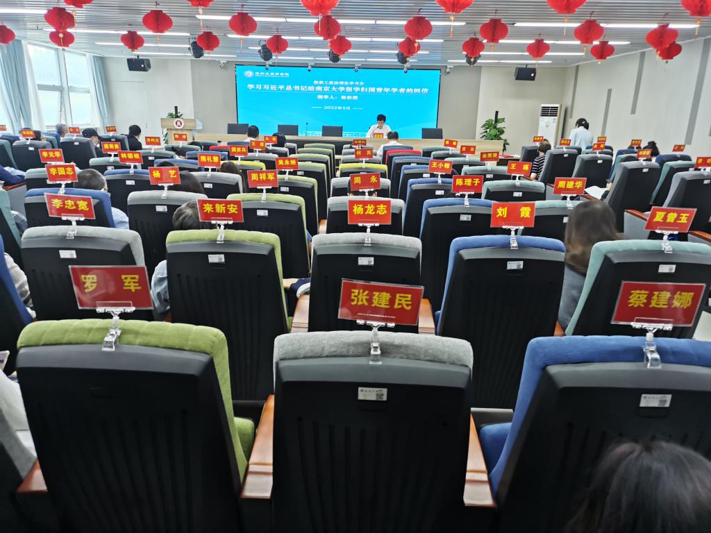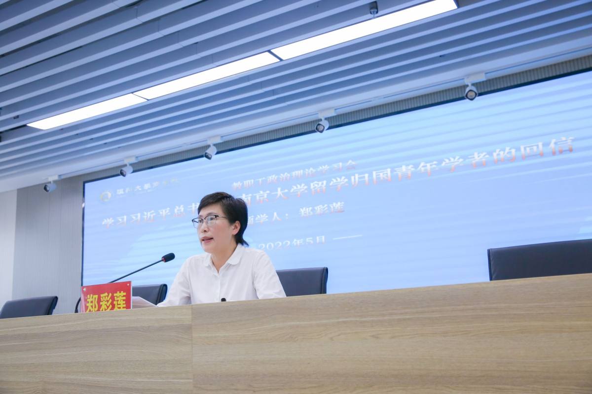 2022年5月25日,商学院在商院楼A226仲辉商道讲堂举行全体教职工政治理论学习大会学习习近平总书记给南京大学留学归国青年学者的回信精神。学院党委书记郑彩莲领学,全体教职工参加学习。