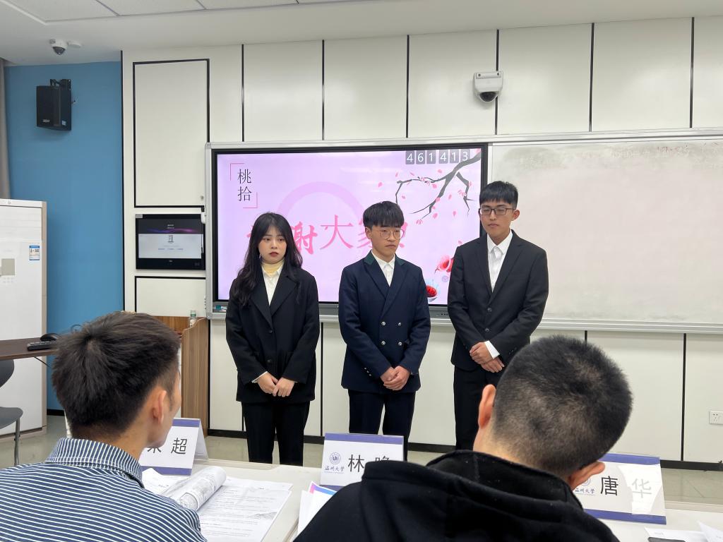 12月22日晚上,温州大学商学院2022年挑战杯大学生创业计划竞赛在北2-107教室落下帷幕。温州大学商学院党委副书记唐华老师、温州大学团委学生科创指导中心主任张淑娴、新东方温州学校副校长林瞻老师和新东方温州学校课部总监朱超老师作为评委出席本次竞赛活动。