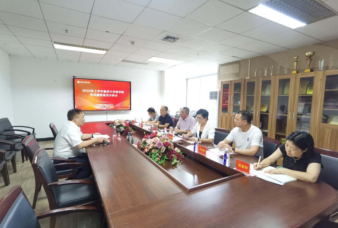 党委于2022年7月1日在A222会议室召开了2022年上半年党风廉政分析会,分析会由商学院党委书记郑彩莲主持,学校校长赵敏、商学院院长胡振华、副书记兼纪委书记唐华、副院长余向前等出席,学院纪委委员张素琴列席分析会。