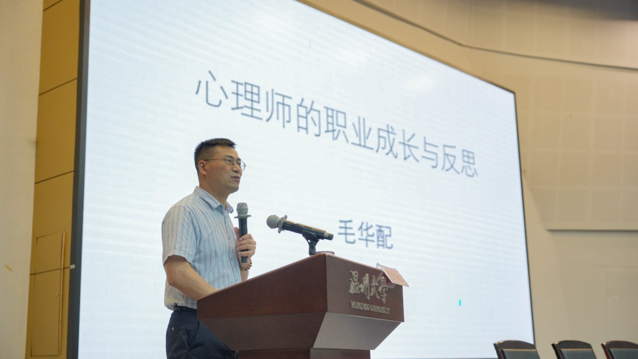 开班第一课邀请温州大学毛华配博士作精彩讲座。毛教授从自身的初学阶段、成长与成熟阶段、以及理论微创新等方面,用风趣幽默的语言和经典实例,深入浅出地引导老师们明白每个心理咨询者都是一个在学习、实践和反思中不断成长的个体。