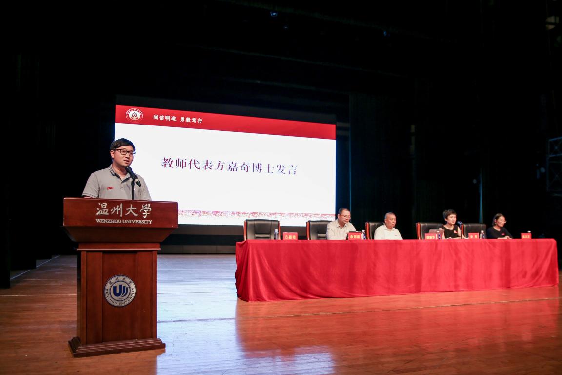 方嘉奇博士从成长、梦想和使命三方面为新同学们提出建议。首先,他谈到,成长为独立个体的过程是迷茫又彷徨的,要勇敢踏出自己的舒适圈。但同时大学的生活又是美好的,充满自由和探索的乐趣。他希望新同学们在成长的过程中要保持理智、心存乐观、怀揣包容、坚守信念,尽情体会成长的美好。其次,在大学阶段,每位同学都应该思考自己的梦想,时刻鞭策自己,以梦为马方可不负韶华。最后,作为新时代大学生,不仅要有社会责任感和使命感,更要努力培养属于自己的知识、常识、胆识、见识,用所学的知识和技能为社会做出贡献。