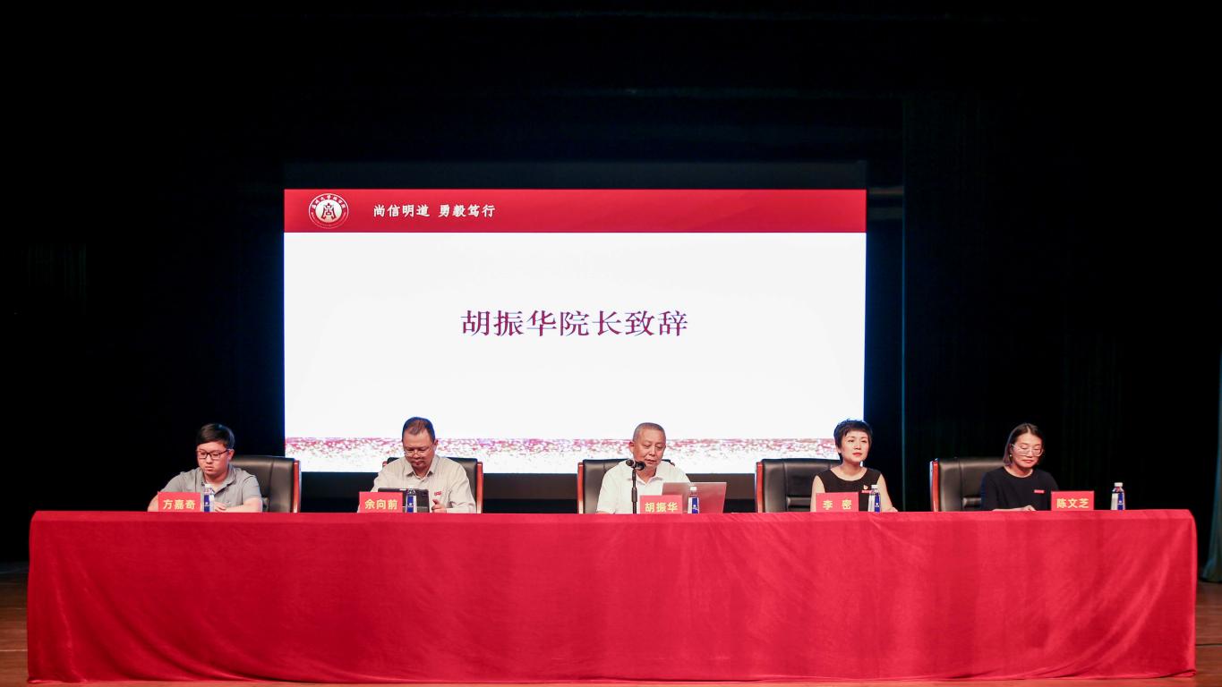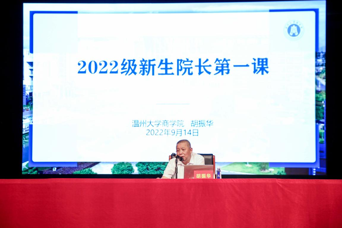 典礼结束后,胡振华院长为新生做始业教育——院长第一课。胡院长从商学院的基本情况、经济学与管理学的区别到商科大学生应该具备的素质三方面为新生作出了详尽介绍。