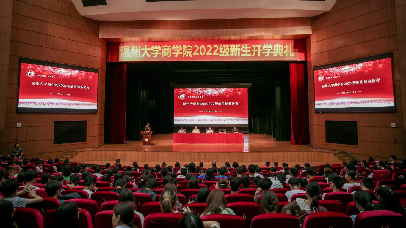 十年寒窗过,金秋踏浪行。秋意正浓,时光正好,伴着微微细雨,9月14日下午,商学院2022级新生开学典礼于育英大礼堂隆重举行。商学院院长胡振华、党委书记李密、副院长余向前、副院长陈文芝、院长助理方嘉奇等学院领导,学院各系主任、全体新生班主任、学院辅导员以及2022级全体新生参加典礼,典礼由学院党委书记李密主持。