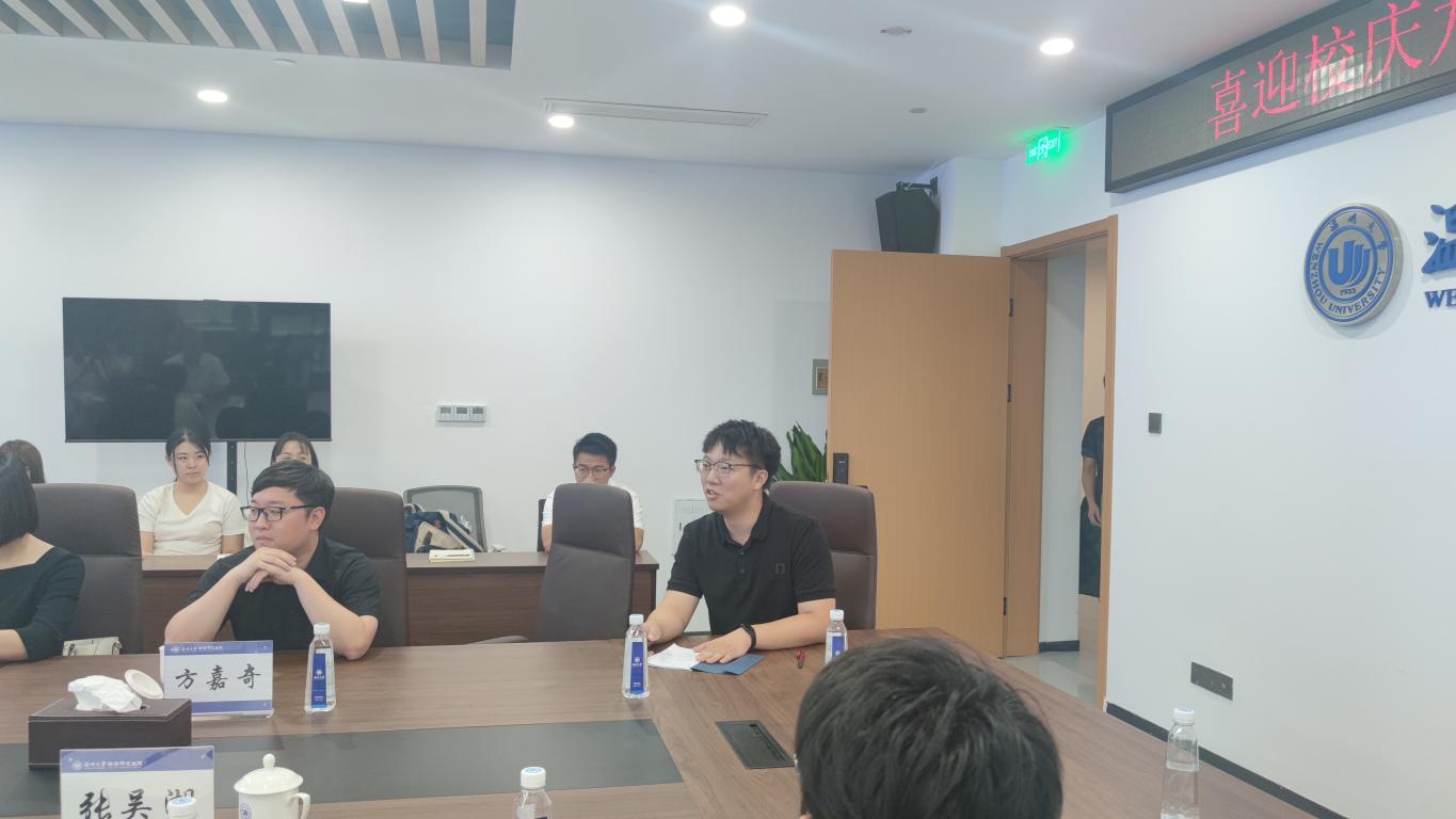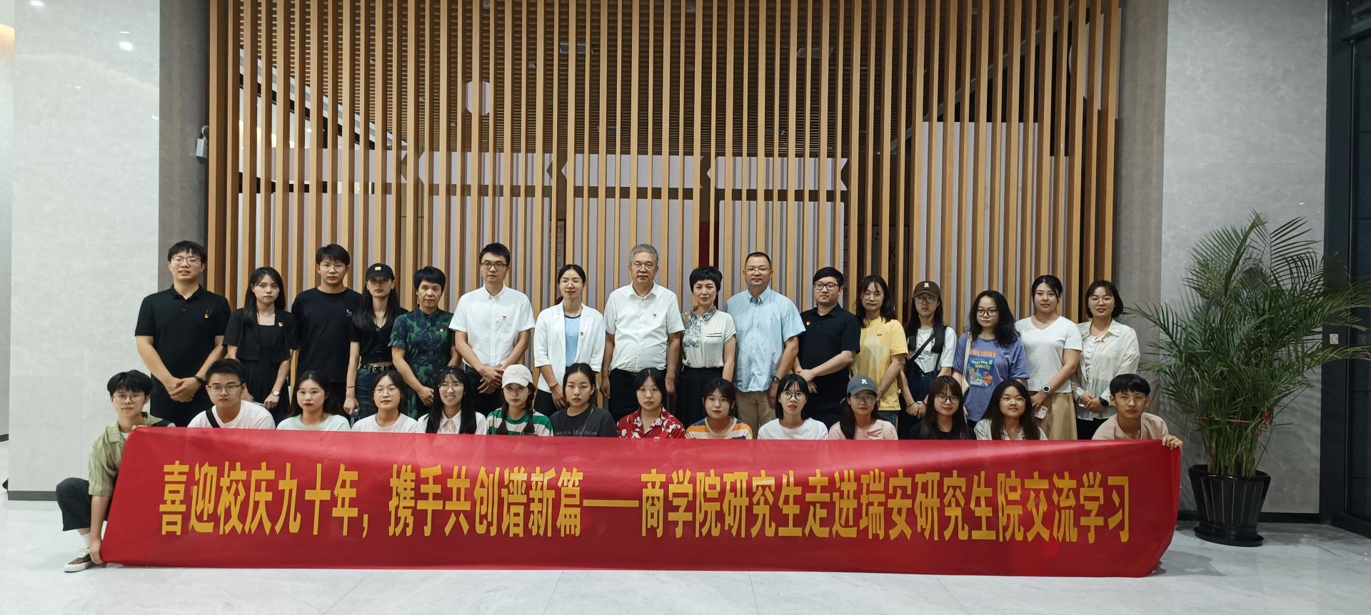 9月26日下午,温州大学商学院师生一行前往温州大学瑞安研究生院交流学习。学院党委书记李密、副院长余向前、副院长陈文芝、院长助理方嘉奇、辅导员王景欣以及25名研究生代表参加此次活动。