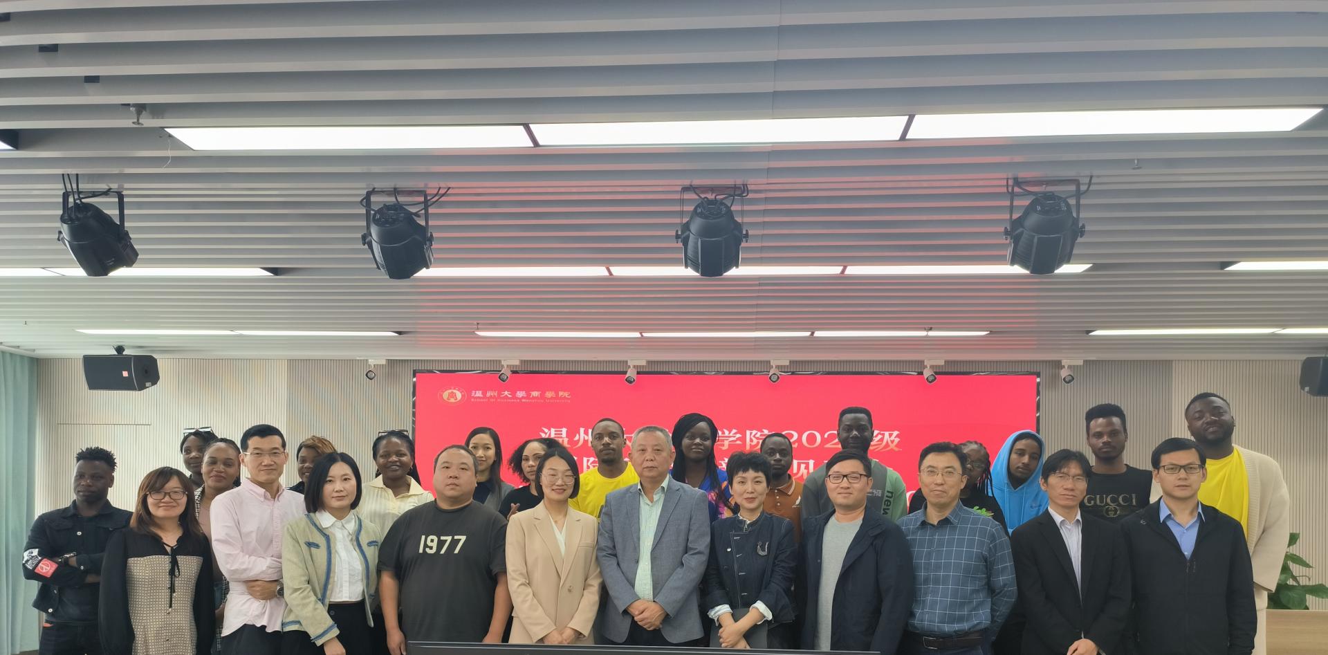 2022年10月20日下午,在商学院A226仲辉商道讲堂,温州大学商学院2022级国际硕士研究生新生见面会如期举行。商学院院长胡振华、商学院党委书记李密、商学院副院长陈文芝、国教部主任徐正、国际研究生负责人王露,以及22级国际硕士研究生导师等出席了此次会议。由于新冠疫情的影响,本次会议线上线下同步举行,18名学生现场参与,其他7名学生通过钉钉会议参会,全场会议以中英双语进行。