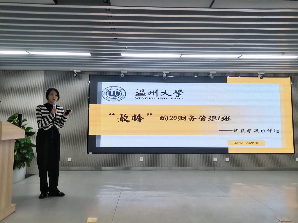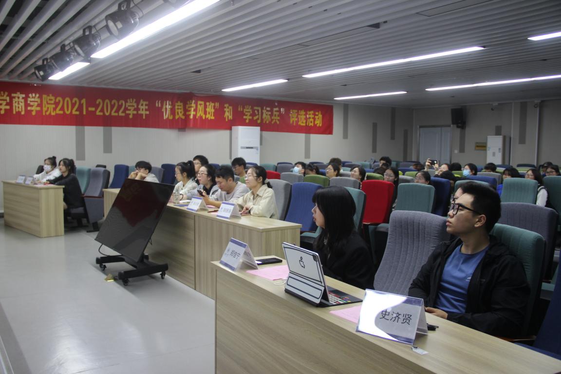 为进一步营造积极良好的学习氛围,激发学生的学习热情,加强校风学风建设,引导和激励广大学生刻苦学习、立志成才,2022年10月27日晚,温州大学商学院2021-2022学年“优良学风班”和“学习标兵”评选活动在商院楼A226会议室举行。院学生科辅导员周洁文、聂海燕、张元祝、张春洋、胡施施,院学生会主席团成员等出席并担任评委。各新生班级代表参与现场观摩。