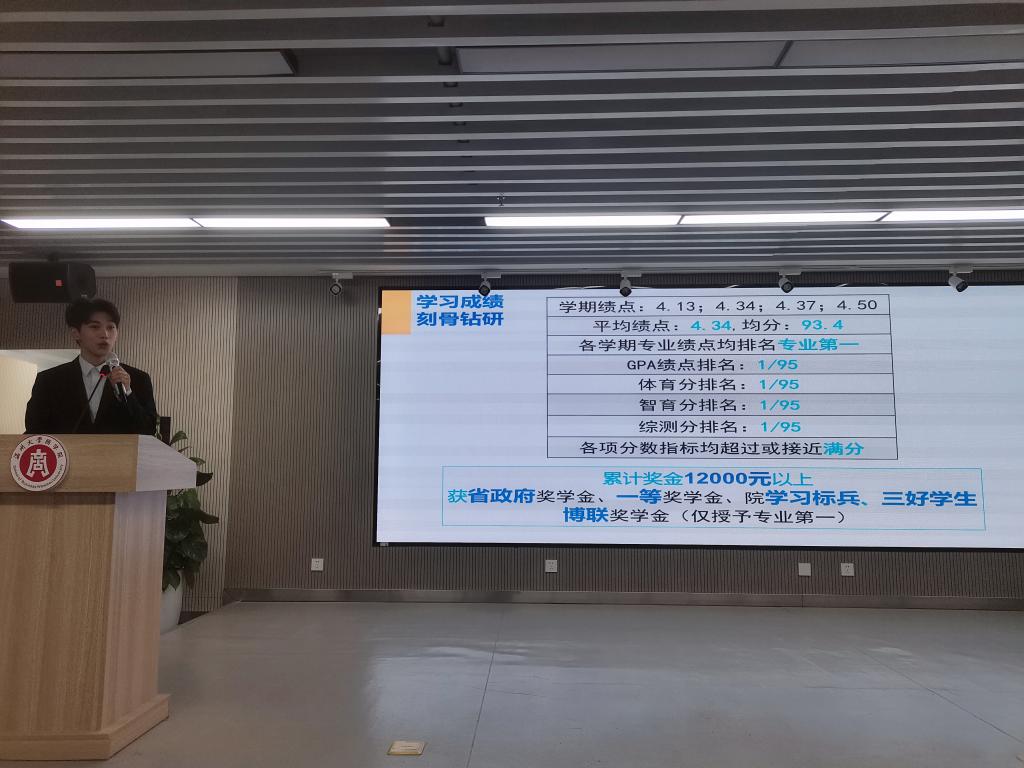 随后12名学习标兵竞选者依次上台展示,每位参选者从思想觉悟、学习成绩、科创竞赛、学生工作等方面展示了自己在学习、工作、生活等不同方面取得的成绩,同时向在座的新生们分享了自己的学习工作方法及经验心得,帮助他们在未来向学习标兵的身份靠拢。