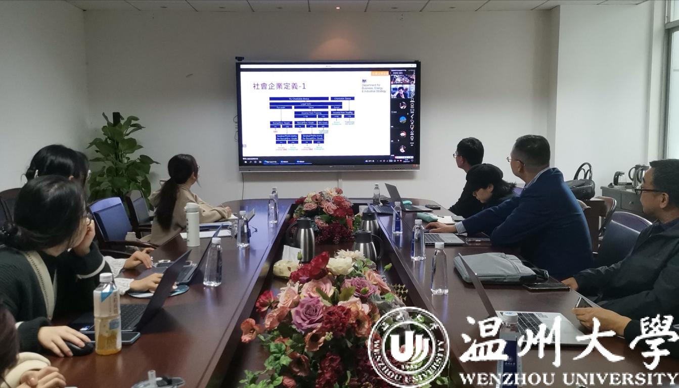 2022年11月9日下午,商学院工商系在商学楼A222举办教科研系列讲座,会上邀请了中国台湾地区中央大学教授、尤努斯社会企业中心主任沈建文博士做线上学术讲座。