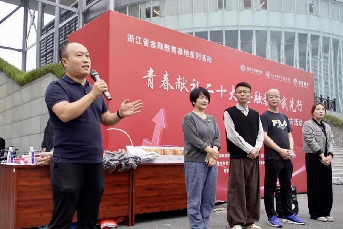选手们早早来到出发点,拉伸热身、研究规则、讨论分工、复习知识点,大家热情高涨,蓄势待发迎接开赛。温州大学商学院党委副书记唐华为活动致辞,唐书记用“三新”介绍了本次活动的意义。一是主题新,活动将宣贯党的二十大精神与金融教育、体育强国相结合;二是形式新,大家走出教室和办公室,共同参与到红色主题定向活动中;三是内容新,融入了党的二十大和金融知识答题、团队合作游戏、校园打卡等项目,寓教于乐、精彩纷呈。
