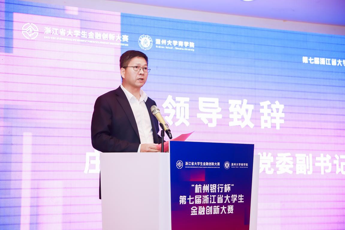 11月27日,由浙江省大学生科技竞赛委员会、钱塘江金融港湾高等教育联盟主办,浙江省大学生金融创新大赛委员会、浙江工商大学和温州大学承办,杭州银行股份有限公司和浙江省金融人才协会协办的“杭州银行杯”第七届浙江省大学生金融创新大赛在温州大学顺利举行。