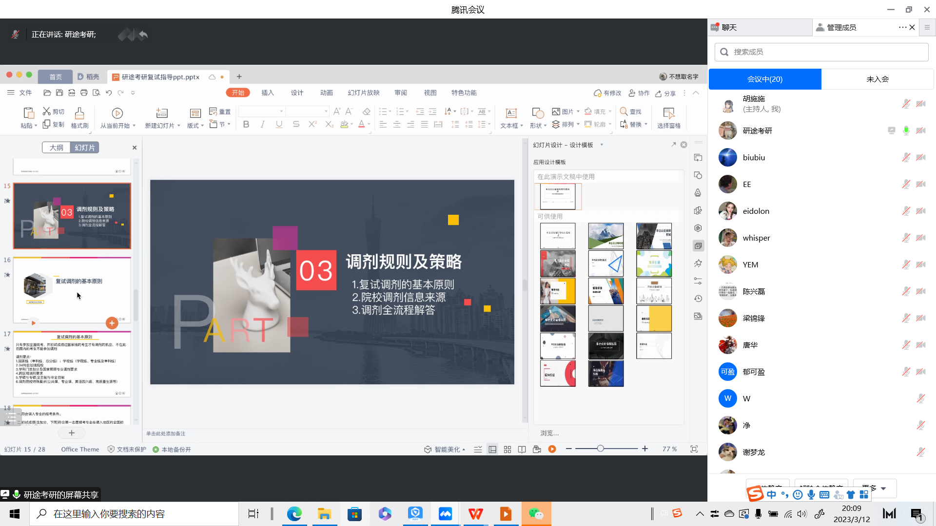 最后,研途考研师璇慧老师为同学们系统介绍了麻豆传媒复试规定和调剂细则等,补充了在复试过程中同学们应注意的问题,使同学们详细了解了考研招生的规定,并一一为同学们答疑解惑。