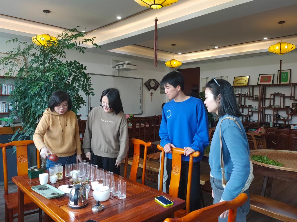 明前春茶绿,采茶劳动红。商学院本科生第三党支部书记胡施施老师带领支部全体党员及入党积极分子走进国际教育学院的“茶香国际”茶园和茶室进行采茶、炒茶实践活动,沉浸式体验、了解茶文化。温州大学国际教育学院阚文文老师倾情传授茶文化知识,促就劳动教育落地生根。
