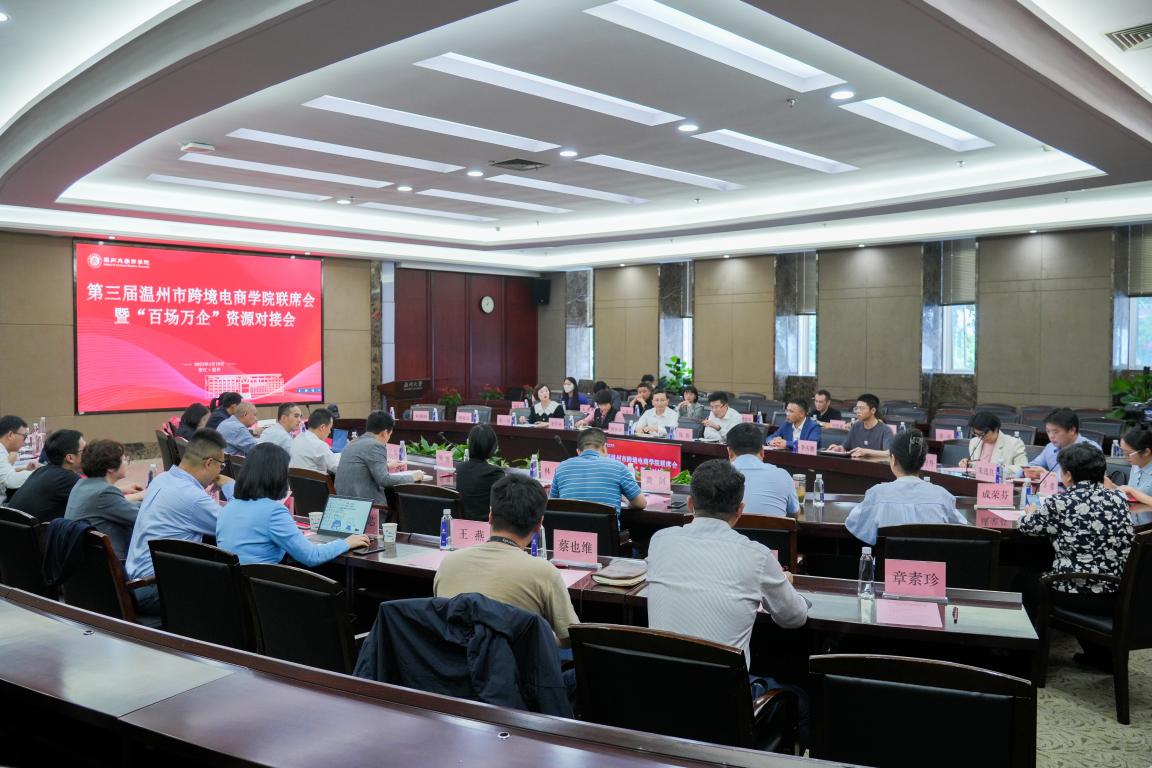 为了进一步提升温州产业的集群优势,整合内外资源,高质量推进温州跨境电商学院的建设,做好政府搭台、高校主导、企业协同、行业共建的四方对话机制,4月19日下午,第三届温州市跨境电商学院联席会暨“百场万企”资源对接会在我校南校区白鹿厅顺利召开。