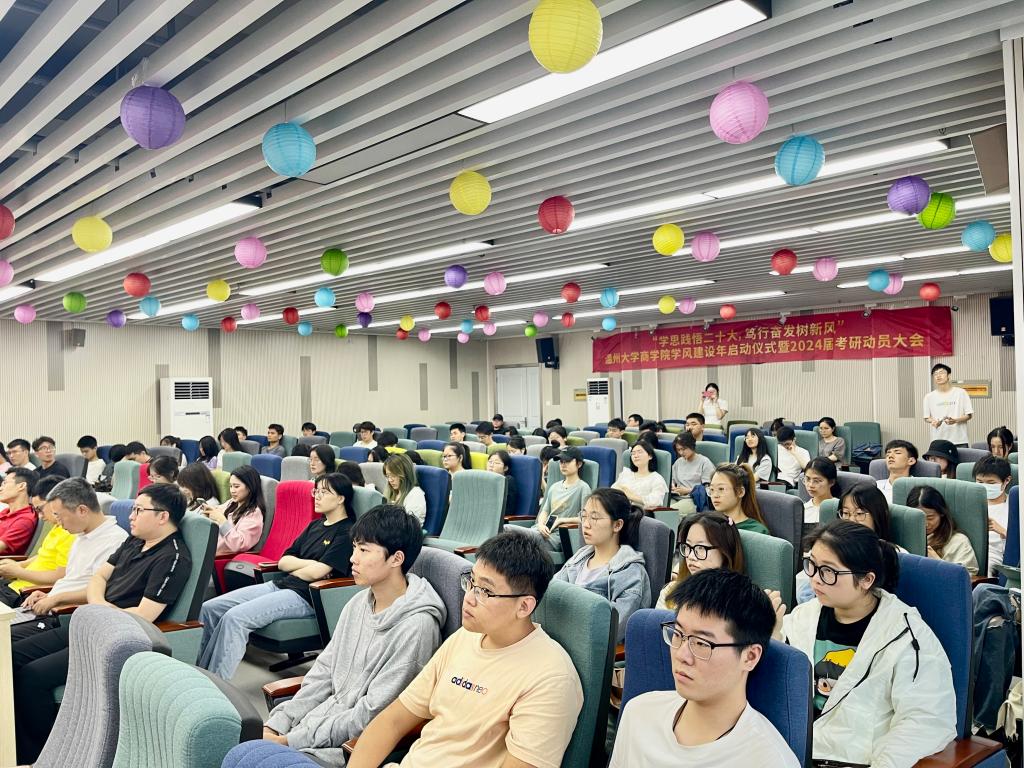 5月17日下午,温州大学商学院“学思践悟二十大,笃行奋发树新风”学风建设年启动仪式暨2024届考研动员大会在院会议室A226隆重举行。商学院党委副书记唐华、院长助理方嘉奇、各系主任、辅导员出席此次活动。活动由学生科科长周洁文主持。