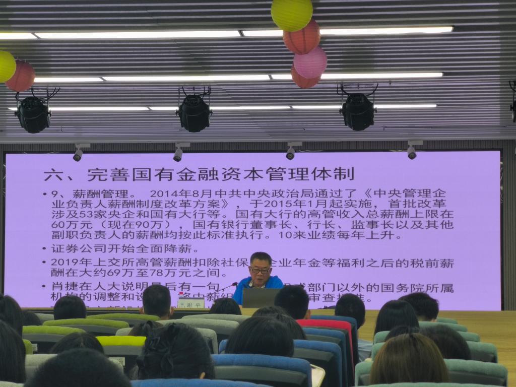5月25日上午,由温州市金融研究院、温州大学金融研究院、温州大学商学院联合举办的《今年金融监管机构改革解读》讲座在温州大学北校区商学院A226商道讲坛举行。清华大学五道口金融学院教授、博士生导师,原中国人民银行金融稳定局局长、中央汇金投资有限责任公司首任总经理、中国投资有限公司副总经理、温州市金融研究院首任院长谢平教授作报告。