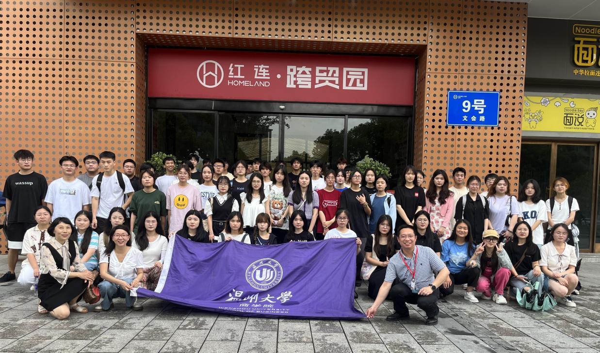 为了进一步了解和学习跨境贸易的有关知识和经验,了解温州跨境贸易合作和服务现状,商学院2022级国际经济与贸易本科专业学生于2023年6月20日在红连跨贸园展开实地考察活动,在红连跨贸园常务副总包攀斌先生的带领下,同学们深入考察了这家浙南新型数字经济产业园,以及共同探讨了这一当前外贸新业态对温州对外贸易的影响。