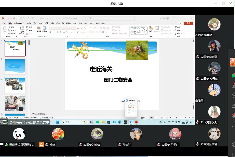 2023年6月20日上午,两场线上讲座——跨境电商初相识和国门生物安全在腾讯会议上顺利展开。讲座邀请到了温州商务局跨境电商综试区的专家陈彤童、李明清及温州海关监管科的专家高海跃。本次讲座旨在让商学院22国贸本的同学们初步了解温州跨境电商发展的现状,以及了解生物安全对进出口贸易的影响。