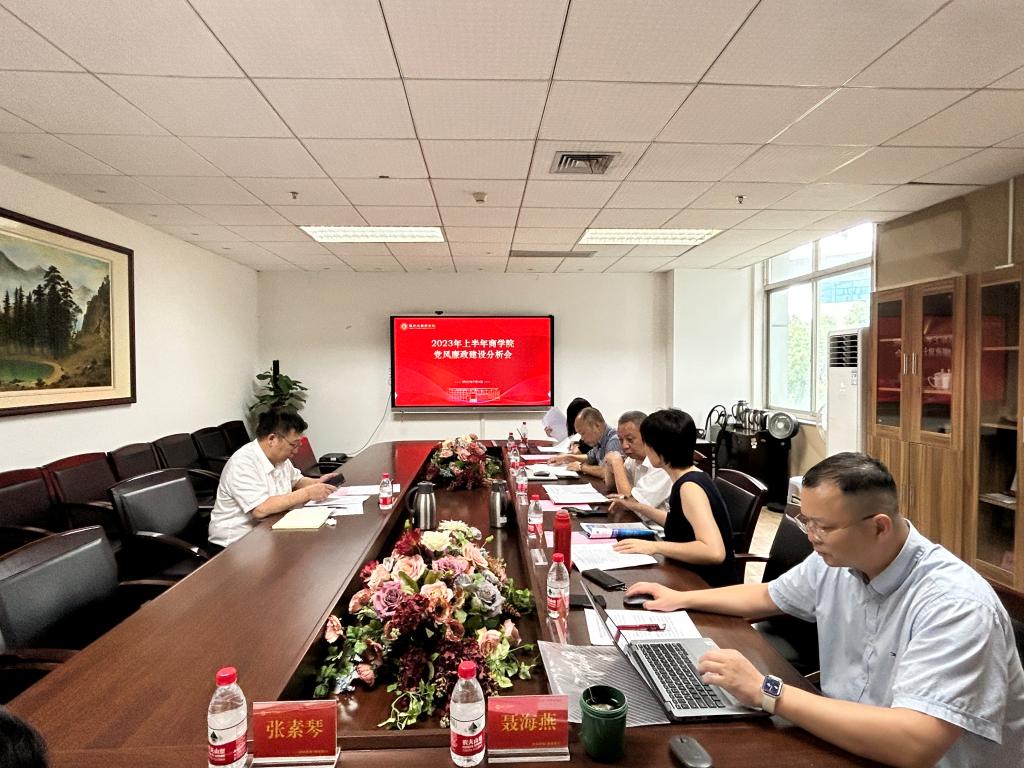 会上,唐华同志介绍2023年上半年商学院党风廉政建设工作总体情况;紧接着,每位班子成员汇报了职责分工范围内的党风廉政建设情况,重点研究存在的问题及整改措施。