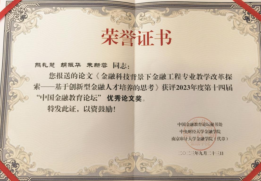 在分论坛会上,熊礼慧老师做了名为《金融科技背景下金融工程专业教学改革探索——基于创新型金融人才培育的思考》的教改论文汇报,并获得本届年会优秀论文奖。