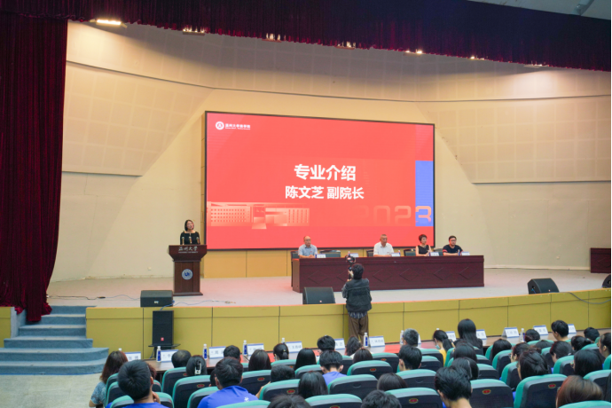 陈文芝副院长从专业培养目标、培养特色以及师资队伍等方面介绍了财务管理、工商管理、金融工程和国际经济与贸易四个本科专业,让新生对所学专业有了更加深入的了解。同时,陈院长也表达了对新生们的衷心祝福,希望在座的同学们都能在接下来的大学时间里学有所成,和专业、学院一起同呼吸、共成长。