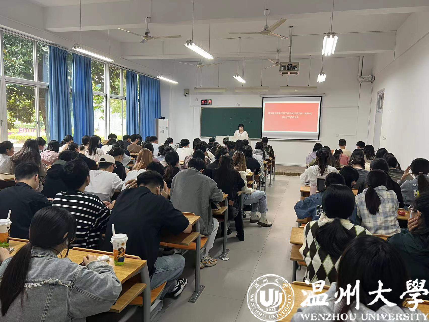 2023年10月11日下午,温州大学商学院工商管理系举行2024届本科生毕业论文开题和实习工作动员大会,会议由系主任陈敏老师主持,22工商(专升本)、20工商本以及工商系全体教师出席了本次动员大会。