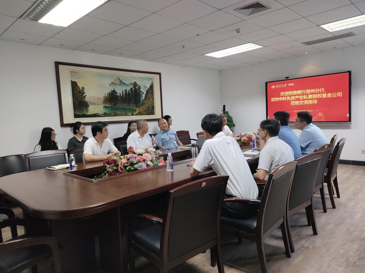 9月26日上午,招商银行温州分行营业部总经理刘斯时、分行领导杨世特,深圳中科先进产业私募股权基金公司执行董事张锐睿等莅临商学院交流指导,双方在A222会议室举行座谈交流。商学院院长胡振华、党委副书记唐华、金融工程系主任林德根、金融工程系教师王小锋等参加座谈。