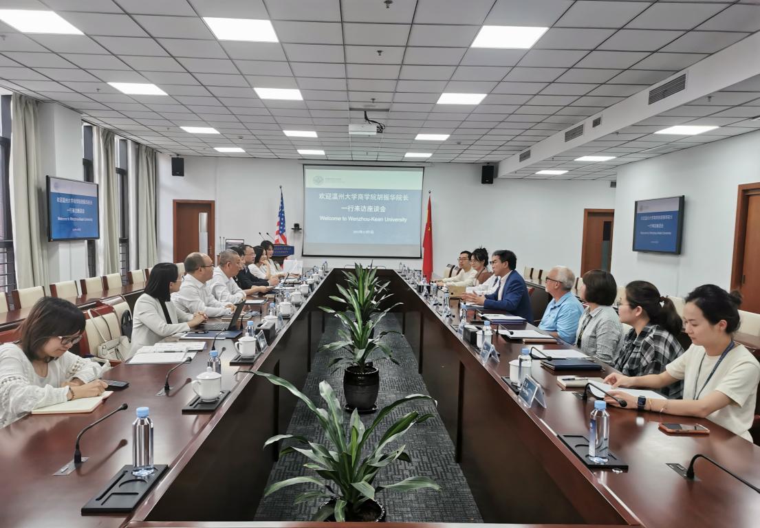 2023年11月3日下午,温州大学商学院院长胡振华、党委书记李密携学院全体领导班子成员及商学院国教部相关人员赴温州肯恩大学调研学习。温州肯恩大学学术副校长杨毅欣教授、温州肯恩大学商学院代理院长Tobin Porterfield等共9人参与座谈会,共同探讨两校国际化合作事宜。