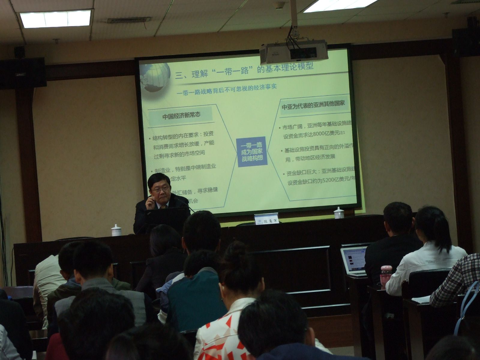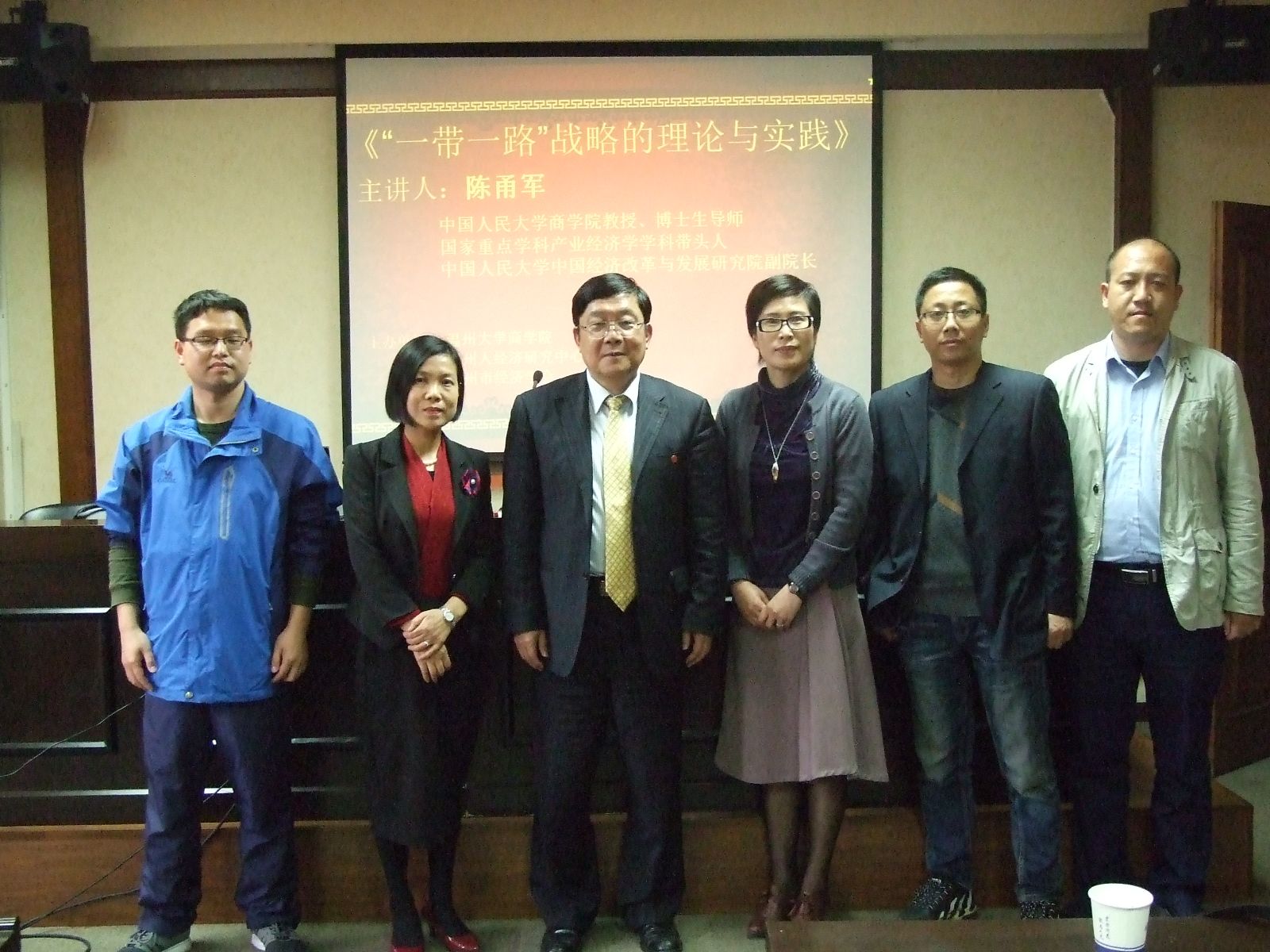 迎来中国人民大学商学院教授、博士生导师陈甬军。陈教授为同学们带来《“一带一路”战略的理论与实践》专题讲座。讲座吸引郑彩莲书记、林俐院长、罗建利院长、张一力教授等十余名教授出席,商学院、马克思主义学院研究生及部分本科生参加此次讲座,全场座无虚席。