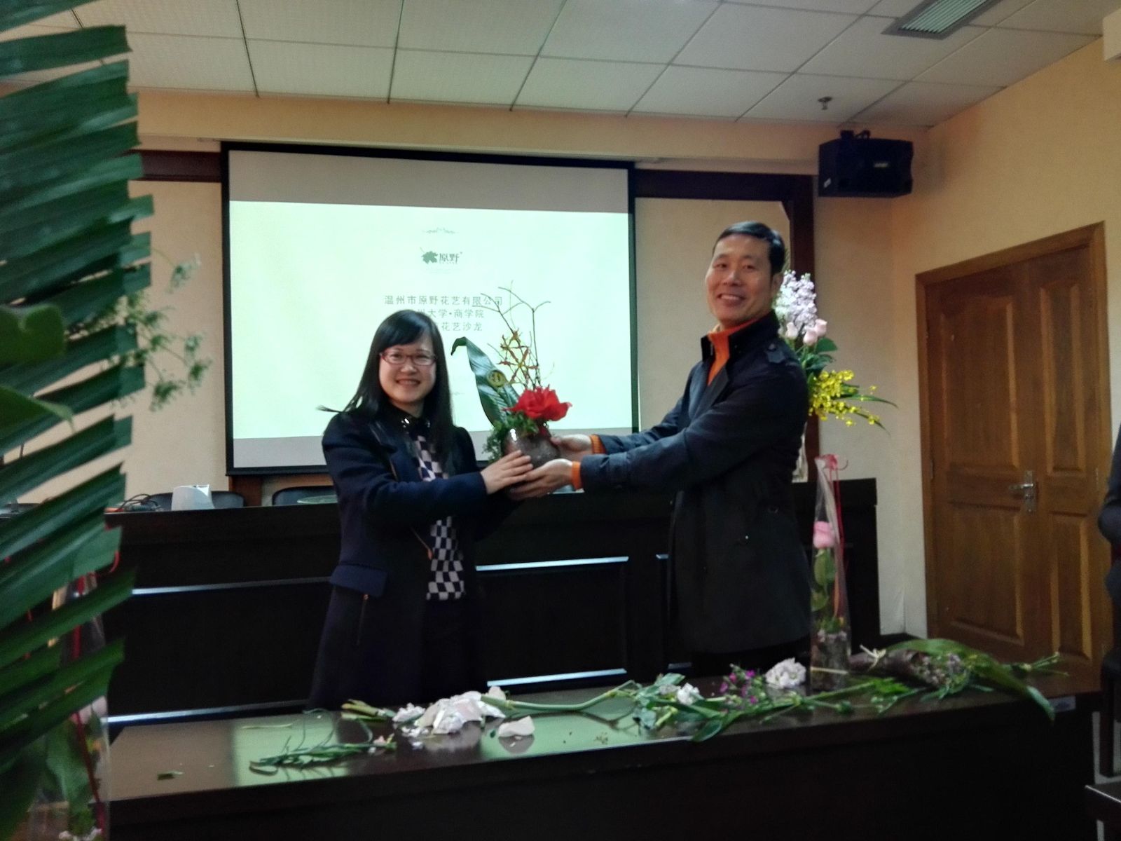 来了,期盼已久的丽人节活动终于来了。3月16日下午,商学院分工会邀请温州市原野花艺的特级园艺师为全体女教职工举行插花艺术讲座、组织“DIY”活动和艺花沙龙。