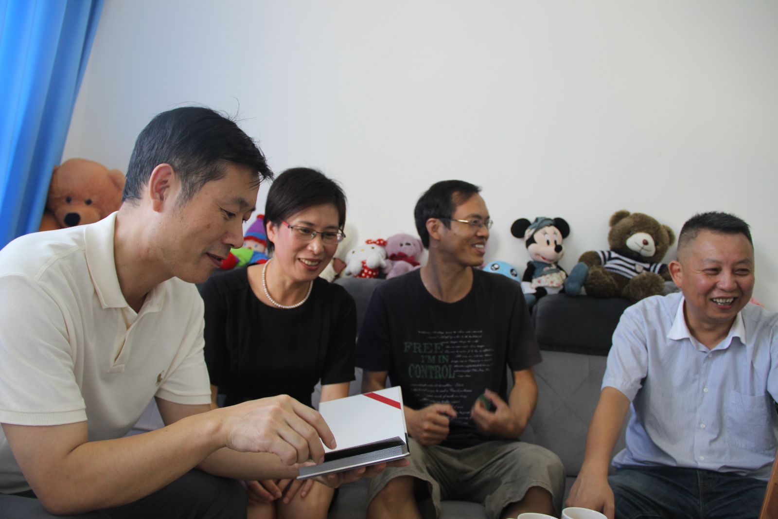 9月10日下午,学院领导先后走访了暂时住在学校A区与C区教师公寓的王智敏、吉云、罗军三名博士老师的家庭,代表学院感谢他们加盟温大商学院并耕耘在教育的第一线,院领导一一向他们送上鲜花致以节日的祝福和问候,并与博士一家进行了亲切的交谈。慰问中,胡振华一行指出,学院发展靠人才,三位博士是难得的人才,在科研教学以及创新性思维层面很有潜力,并有建树,希望对学院的发展做出更大的贡献。在吉云博士家里,院领导一行对吉云博士获得今年国家基金项目表示祝贺,还翻看起他三岁女儿的照片集,并了解孩子上幼儿园的事。王智敏博士是从澳大利亚留学归来的博士,他的先生也是学校另一学院的博士,院领导了解了他们的新住房安排的进展情况。罗军博士今年从南开大学引进,正在置办家具,院领导希望罗军博士尽快适应学校的环境,学院将努力做好后勤服务。每到一家,院领导详细询问了各位老师的生活情况,认真听取了他们的诉求,并表示要与学校相关部门一起努力做好条件的改善,让老师们安心工作,并感谢其家人对他们工作与生活的关心与支持。