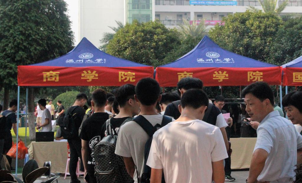 新生和家长们有序地注册、报到